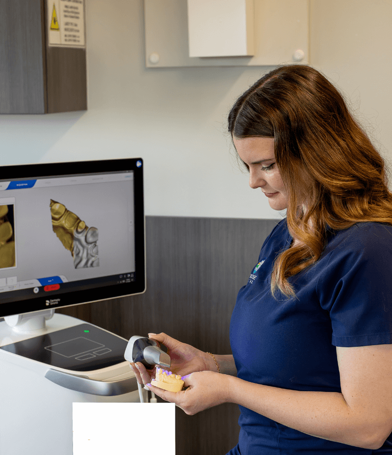 At SkyRidge Dental, we truly value your time and want to make your appointments with us as productive as possible. Our CEREC® machine combines 3D digital imaging, computer-aided design, and manufacturing technology (CAD-CAM). With this tech, your crown or bridge is designed and perfected digitally before it is created. By utilizing CEREC®’s technology, it gives us the ability to fabricate a permanent crown or bridge restoration during your appointment!